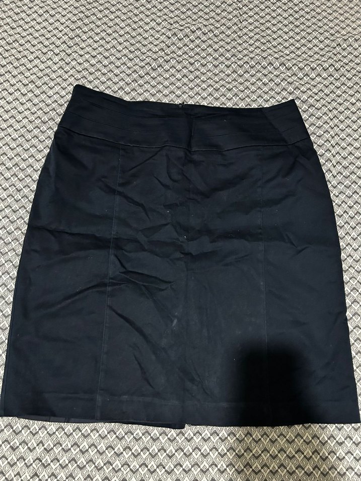 Siyah midi kalem etek, bel kemerli ve vücuda oturan kesimiyle ofis için uygun, sade ve gotik tarzda.