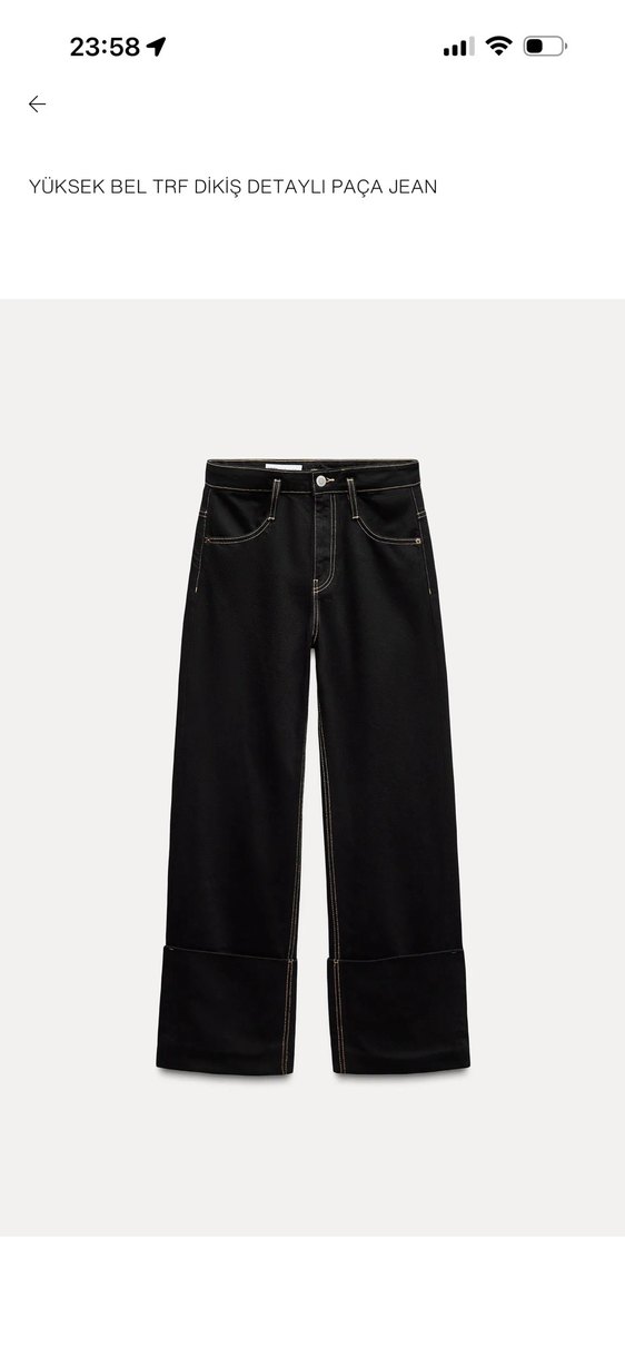 Siyah kot kumaştan, kemerli ve midi boyda, rahat kesime sahip günlük kullanıma uygun pantolon. Zara kot