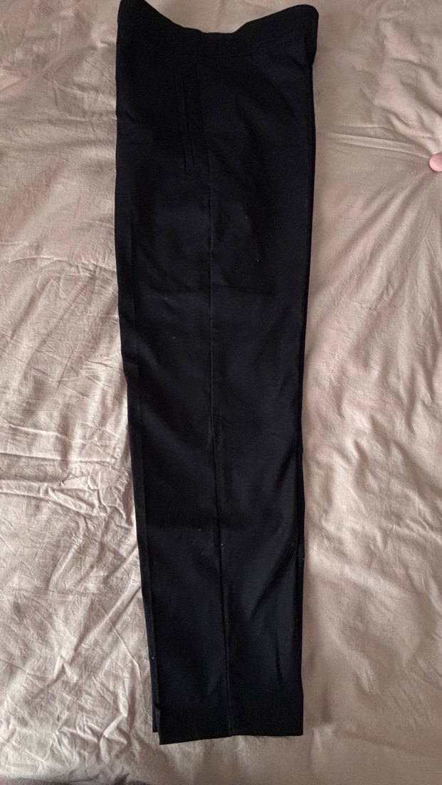 Siyah, midi boy, kemerli kadın kumaş pantolon. Ofis ve sokak stiline uygun, minimalist ve şık tasarım.