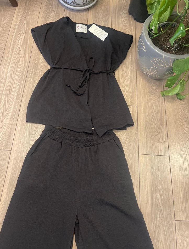 Kemerli bel kısmı ve rahat kesimiyle siyah mini keten kadın pantolon, günlük kullanıma uygun minimalist tarzda.zara model butik ürünüdür