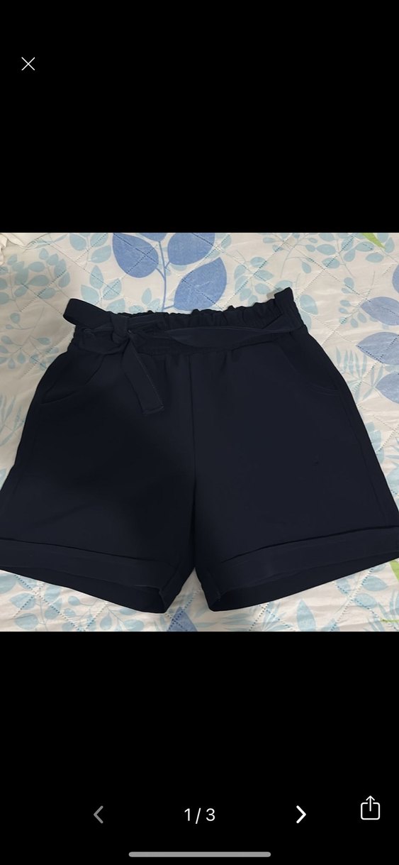 Yumuşak ve sıcak kumaştan, kemerli, bol kesim siyah mini şort. Sokak tarzı ve rahat dış mekan kullanımı için uygundur.