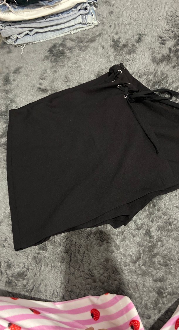 Siyah Kemerli Mini şort Etek