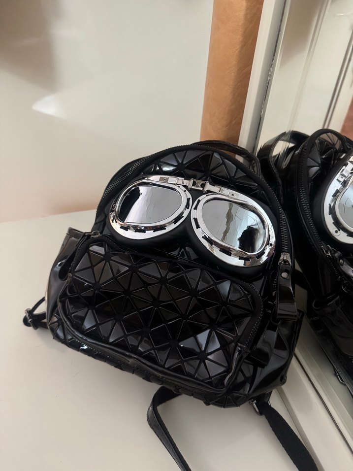 Siyah, kareli desenli ve kemerli detaylara sahip biker tarzı sırt çantası. Parlak plastik malzemeden üretilmiş, grunge punk tarzını günlük kullanıma sunar. ️
