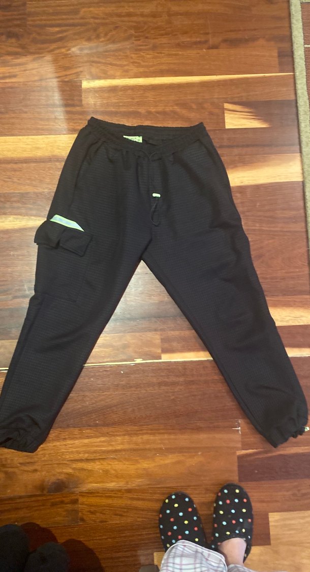 Kemerli ve yumuşak kumaşlı siyah, bol kesim erkek eşofman. Normal boyda ve rahat sokak stili outdoor kullanıma uygun. Boy91 cm