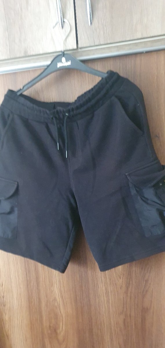 Siyah, kemerli, bol kesim erkek şort. Yumuşak ve sıcak kumaştan, yan ceplidir. Sokak stiline uygun, dış mekan kullanımı için ideal.