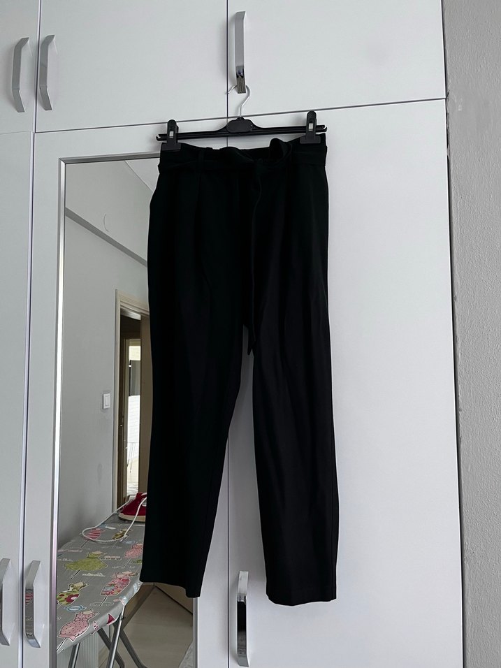 Siyah Kemerli Rahat Kesim Kadın Pantolon