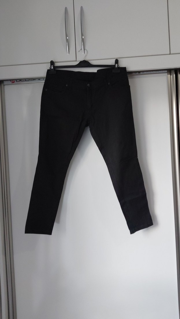 Siyah renkte, kemerli ve regular fit kesime sahip midi boy denim pantolon. Günlük rahat kullanıma uygun, desen içermeyen bir tasarıma sahiptir.
