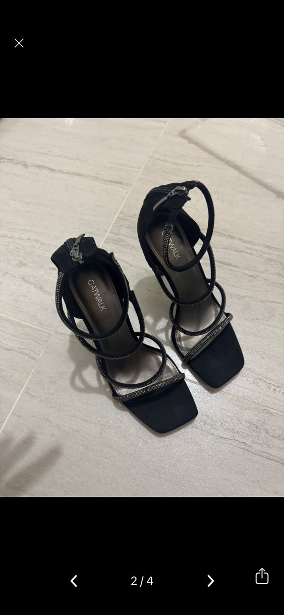 hediye geldi hiç kullanılmadı maalesef ayağıma dar geldi marka catwalk ürünün sıfırı 2 bin civarı Siyah yılan desenli, kemerli lastik stiletto topuklu ayakkabı. Romantik gece için çağdaş ve gösterişli tarz.