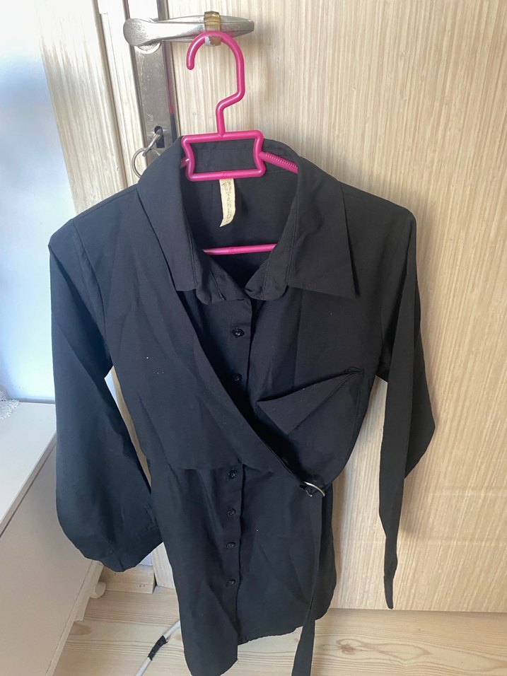 Siyah Kemerli Strappy Kadın Gömlek