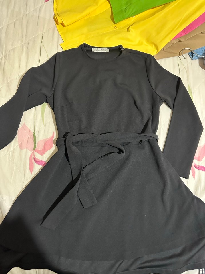 Siyah renkli, kemerli, uzun kollu, yuvarlak yakalı tunik yumuşak sentetik kumaştan üretilmiştir. Günlük rahat kullanım için uygundur. 2 kere giyildi