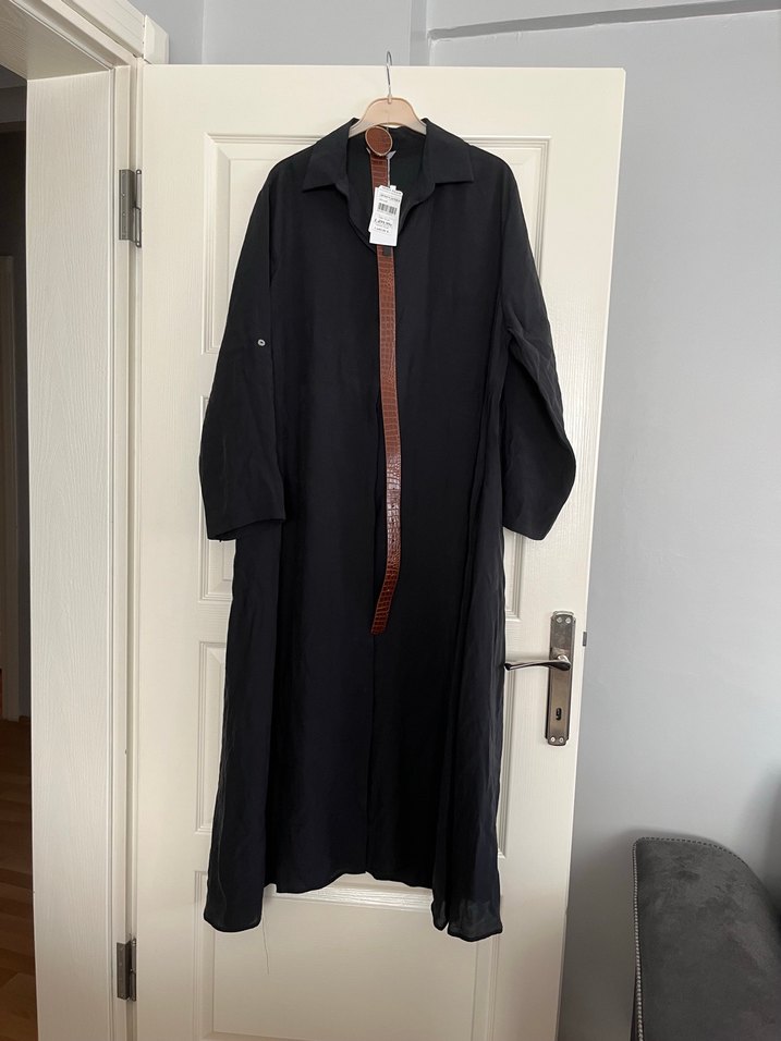 Siyah Kemerli Uzun gömlek elbise