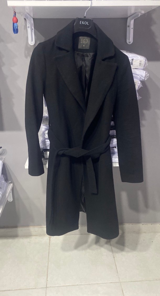 Siyah uzun kaban, kemer ve yakalı tasarıma sahip, sıcak ve yumuşak kumaştan üretilmiştir. Şık ve sade görünümlüdür.