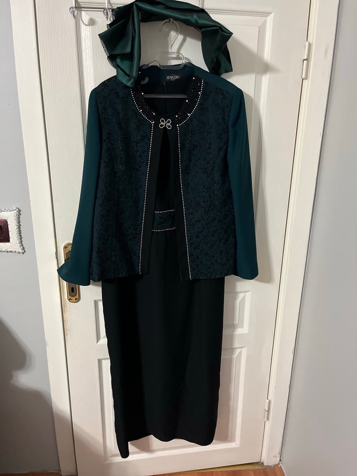 Siyah Kemerli Uzun Kadın Takım Elbise EŞARP İLE BERABER