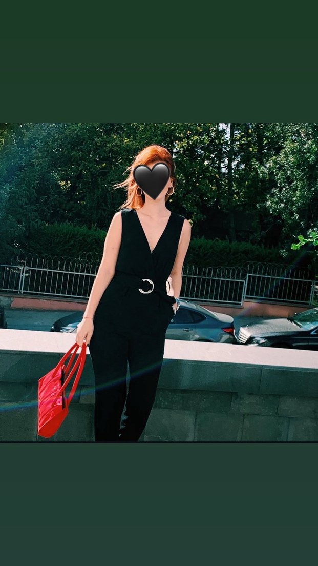 Bu siyah tulum, V yakalı ve kemerli olup, cesur bir sokak stili sunar. Kolsuz ve midi boy, dış mekan kullanımı için uygundur. Video atabilirim isteyene