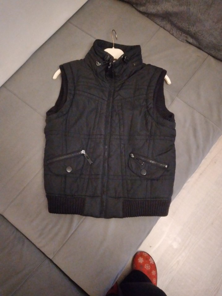 Siyah, kemerli, yüksek yakalı, cep detaylı, yumuşak ve sıcak dokulu, normal boyda kadın yelek.