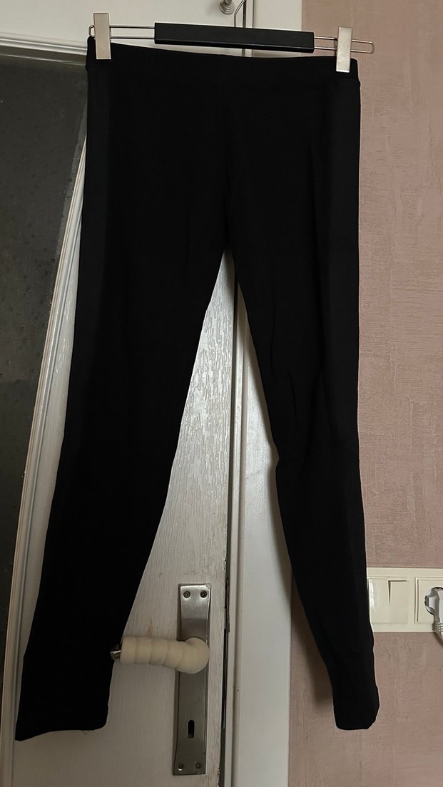 Siyah, deri, midi boy ve sentetik kumaştan üretilmiş, günlük sokak stili için uygun dar kesim kadın tayt. Boy:88cm S beden Marka temsilidir