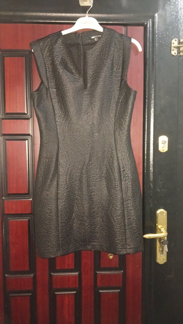 siyah kendinden desenli elbise