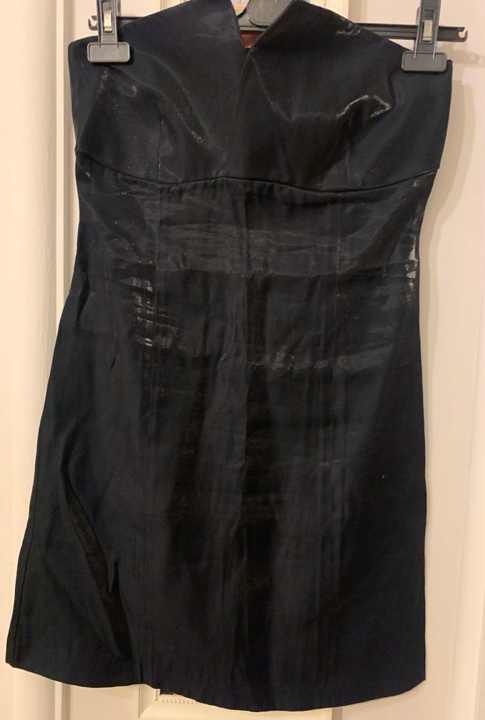 Straplez yaka ve drapeli detaylara sahip siyah, vücuda oturan midi elbise, gotik tarzıyla romantik akşamlar için uygundur.Bedrn 34-36 gibidir.Alnadan önce Mutkaka ölçü isteyiniz.