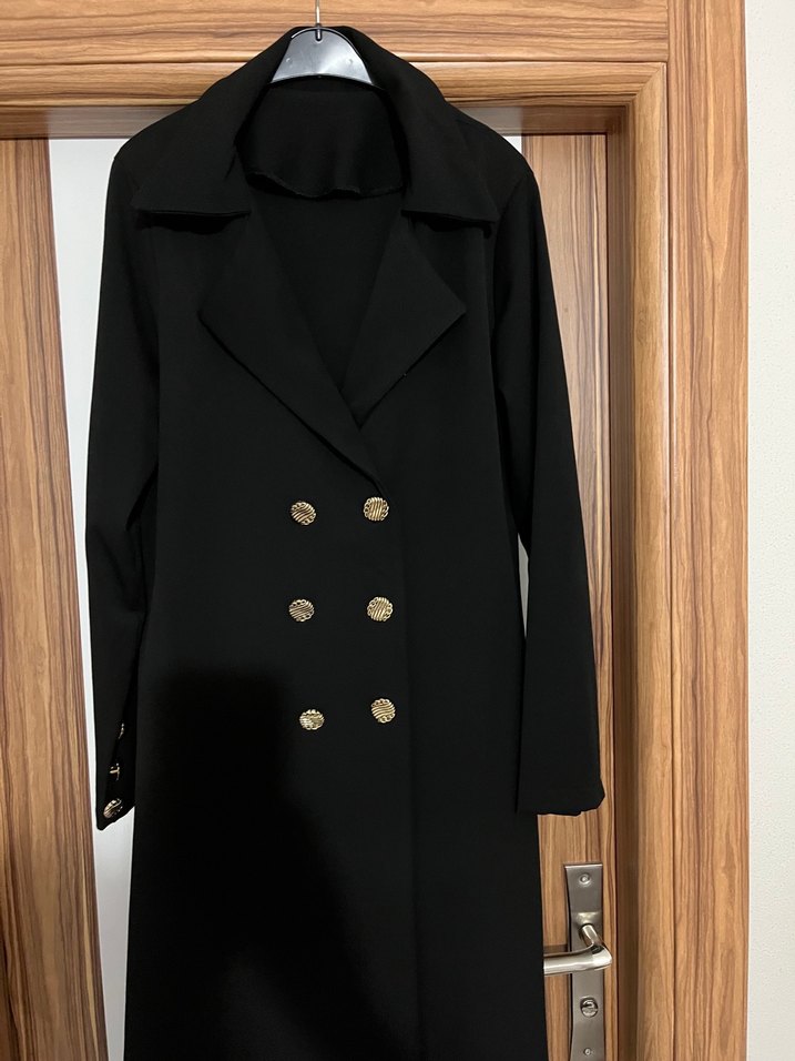 Özel dikim siyah Kravize yaka blazer ceket 44 46 uyumludur sayılı kullanılmıştır hiçbir sıkıntısı yoktur boyu 120 cm dir Double krep kumaştan dikilmiştir hafif likralı kumaş sayesinde kullanımı rahattır