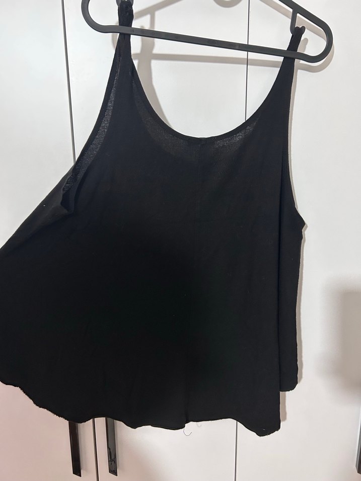 Siyah keten kumaştan, askılı, salaş kesim midi uzunlukta rahat bir atlet. Dış mekan kullanımı için uygundur.