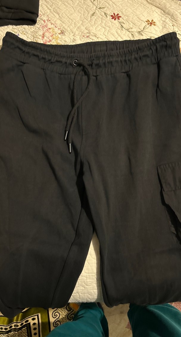 Bel kemerli, siyah keten kumaştan bol kesim erkek pantolon. Günlük kullanıma uygun rahat bir sokak tarzı sunar.