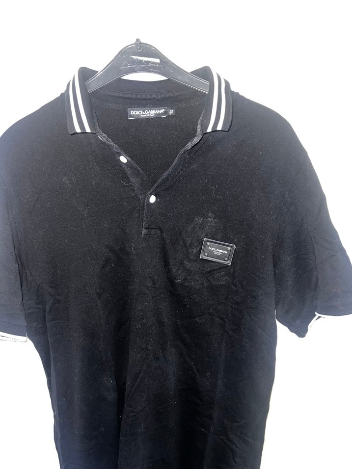 Siyah keten kumaştan, düğmeli ve yakalı erkek polo tişört. Kısa kollu ve bol kesim, gündelik sokak stili için uygundur.