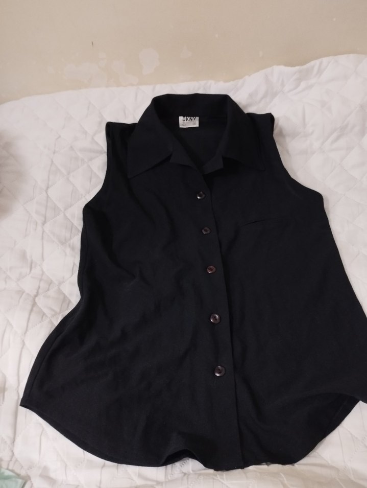 Siyah Keten Düğmeli Kolsuz Gömlek