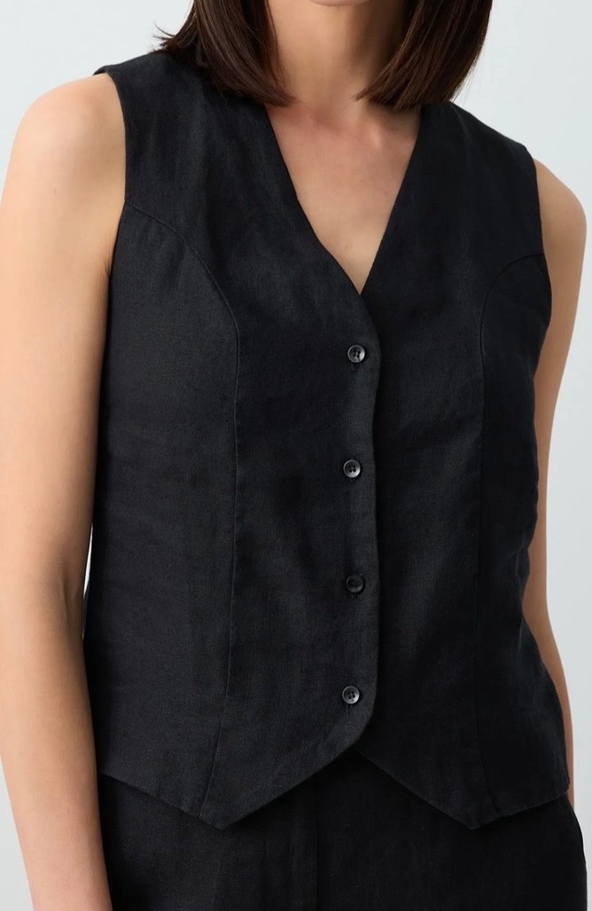Siyah Keten Düğmeli V Yaka Kadın Yelek
