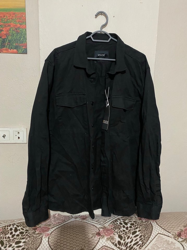 Siyah keten kumaştan yapılmış, bol kesim ve uzun kollu erkek gömleği. Önü düğmeli ve notched lapel yaka detayı bulunur. Günlük kullanıma uygun.