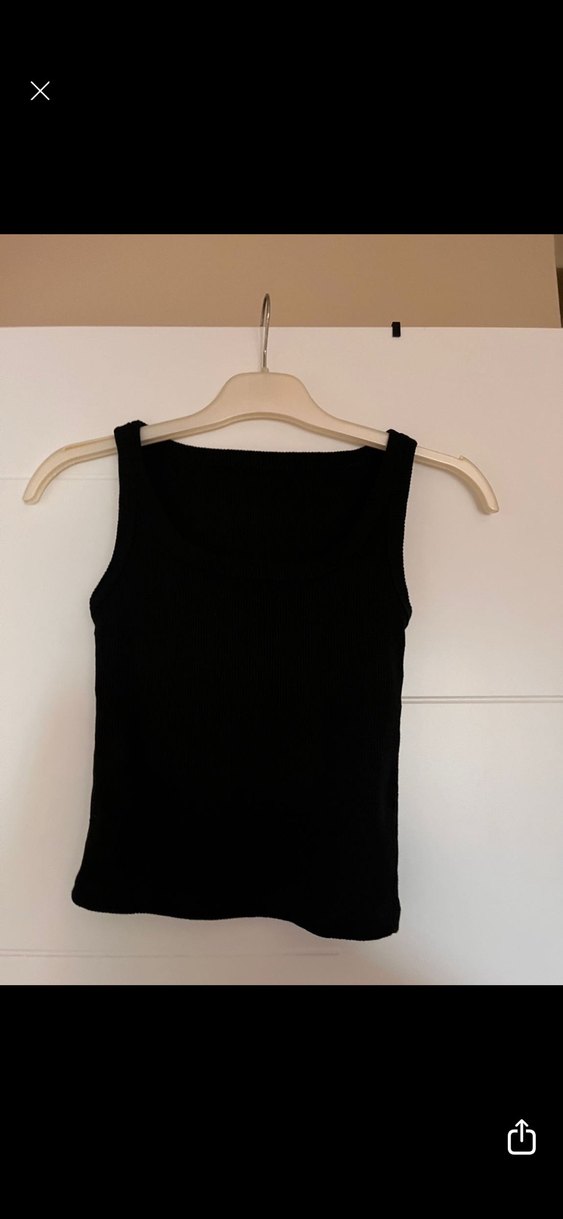 Siyah keten kumaştan, kolsuz ve tek renkli, tekne yakalı, midi boyda, vücuda oturan kadın crop. Günlük kullanıma uygun sade ve şık tasarım.