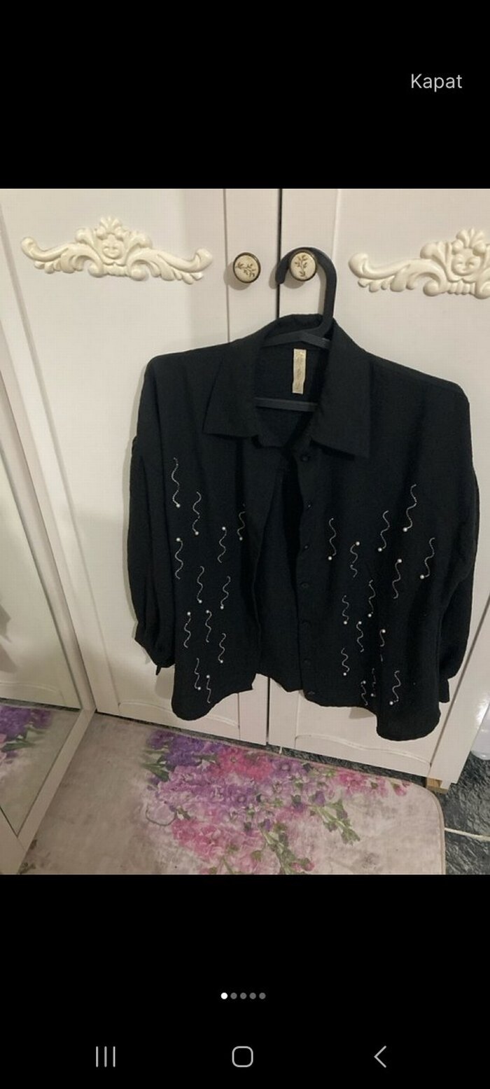 Siyah Keten Kadın Gömlek M/L uyumlu