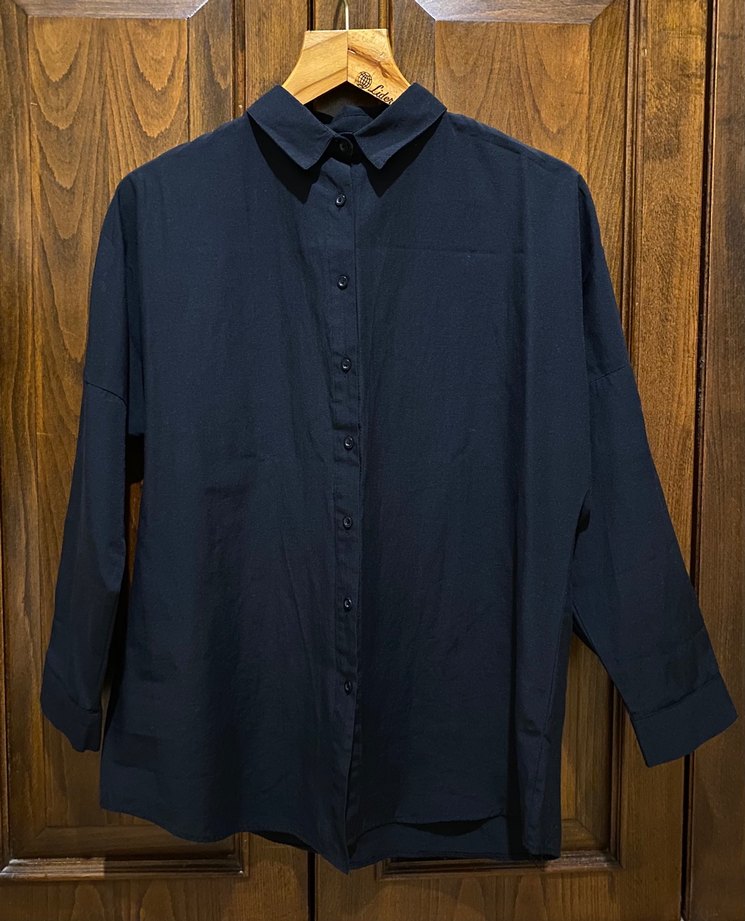 Siyah Keten Kadın Gömlek