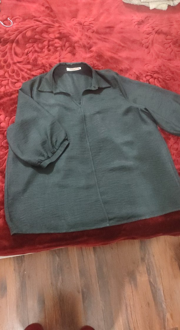 Yumuşak keten kumaştan, salaş kesim siyah renkli kadın gömlek. yarım kollu, yakalı, normal midi boyunda, günlük kullanım için uygun. 54 bedendir