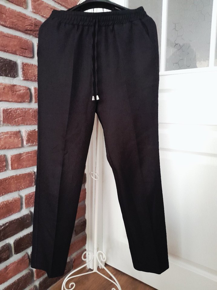 Günlük kullanım için midi boy, regular fit siyah keten pantolon. Sokak stiline uygun, rahat ve zahmetsiz şıklık sunar.