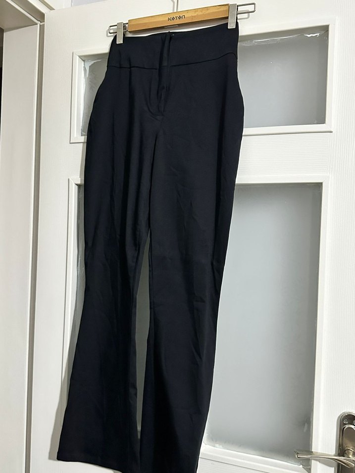 Siyah Keten Kumaş Ofis Pantolonu