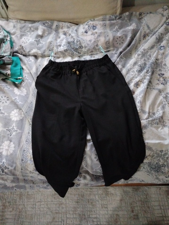 Siyah Keten Mini Rahat Kesim Kadın Pantolon
