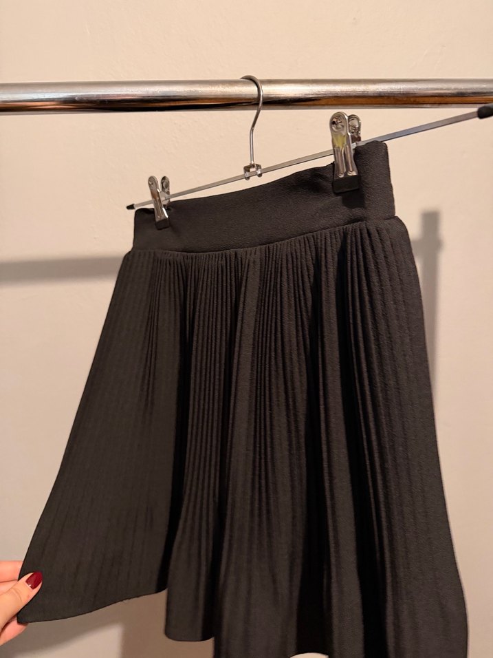 Siyah keten pilili mini etek, bol kesimiyle gotik ve Paris tarzını günlük kullanıma sunar. ✨