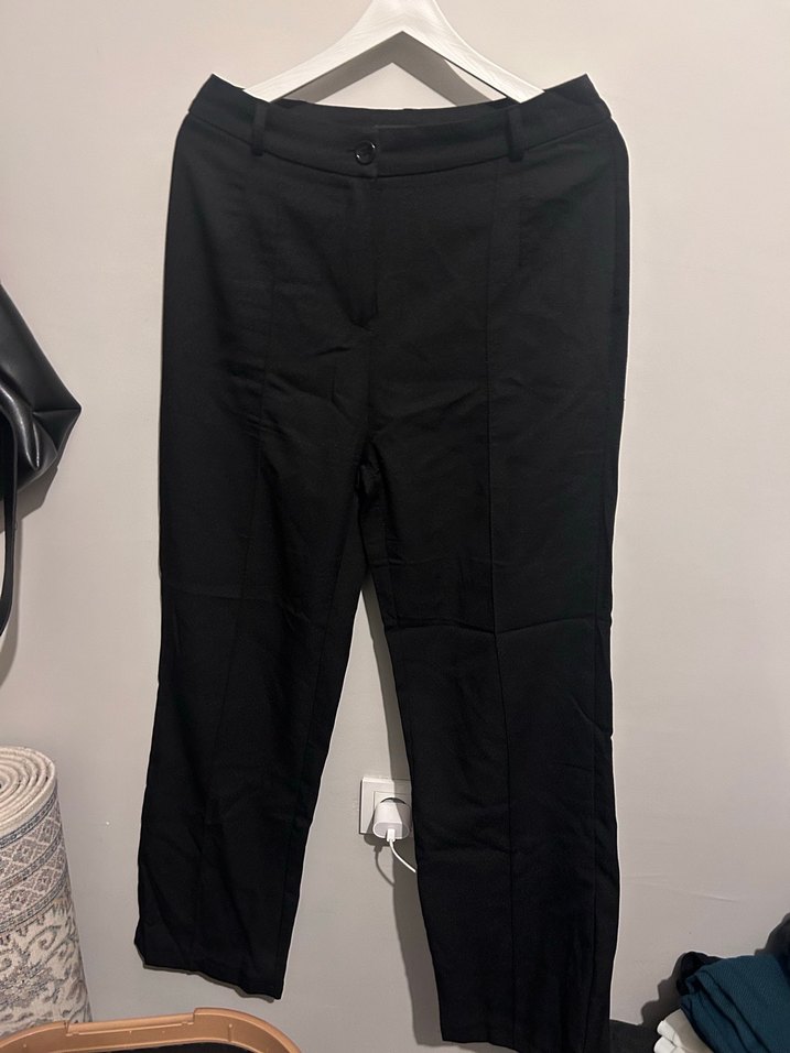 Siyah keten kumaştan, rahat kesim ve midi boyda kadın pantolon. Ofis ve rahat sokak stili için uygun. ✨