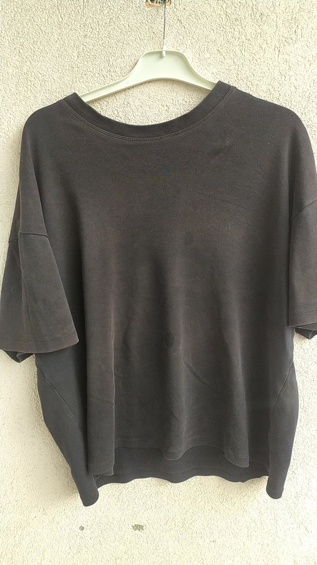 Siyah Keten Rahat Kesim Tişört