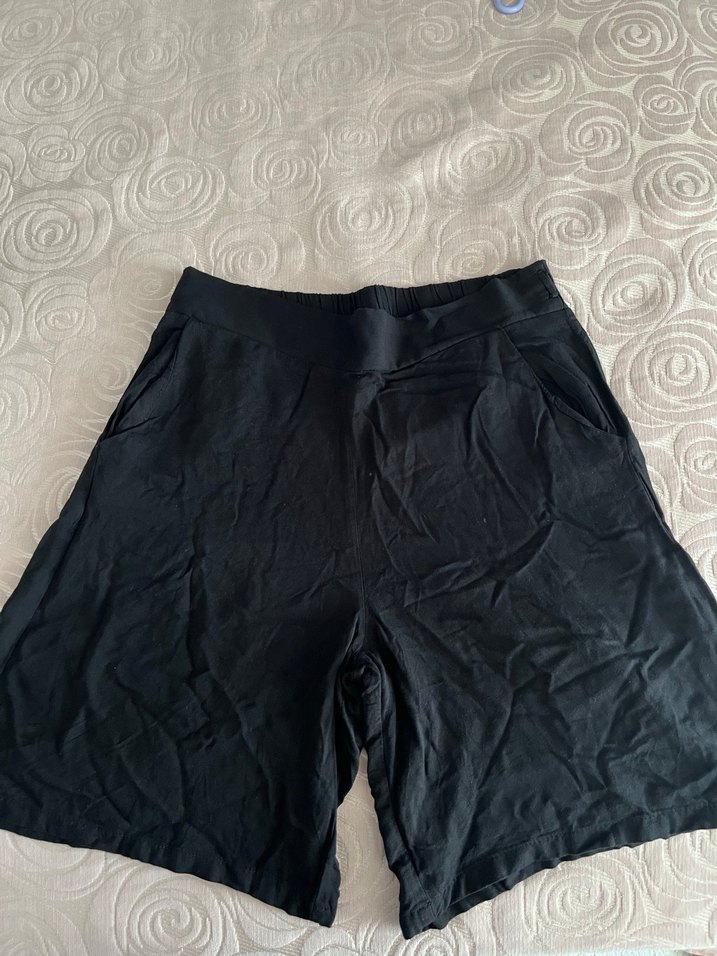 Salaş kesim, keten kumaştan yapılmış siyah midi şort
