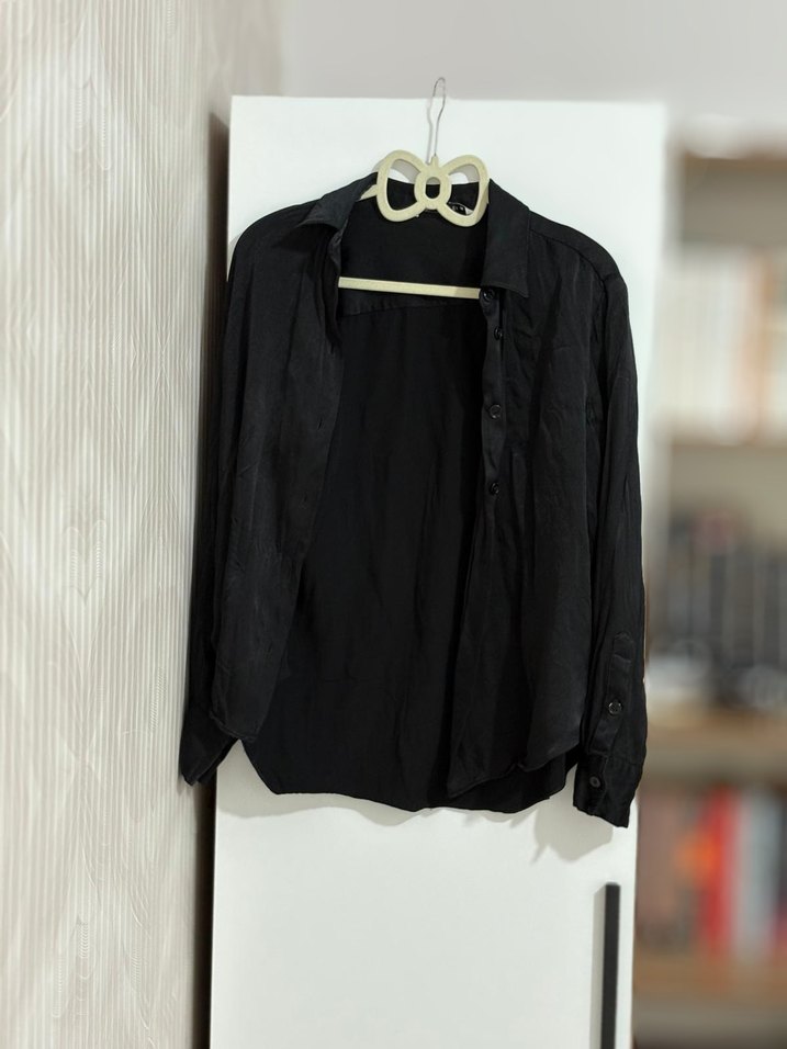 Siyah keten, yakalı ve düğmeli uzun kollu gömlek. Gevşek kesimiyle minimalist gotik tarz sunar.