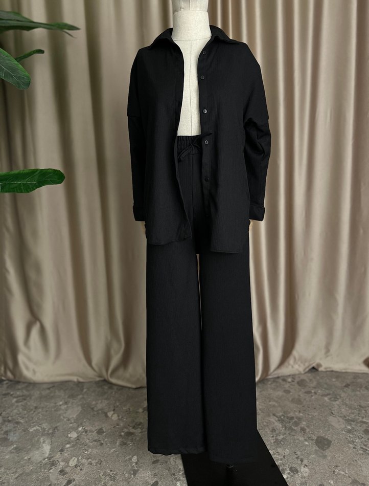 Siyah Keten Uzun Kollu Kadın Takım Elbise