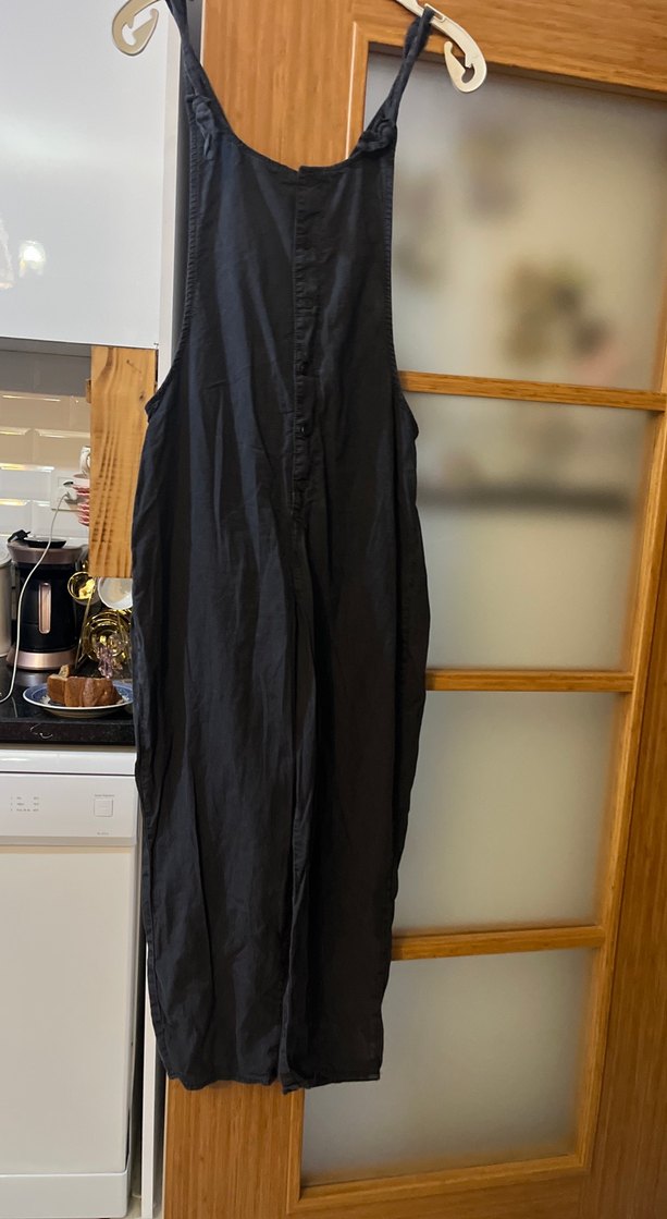 Siyah Keten Uzun Salaş Fermuarlı Tulum