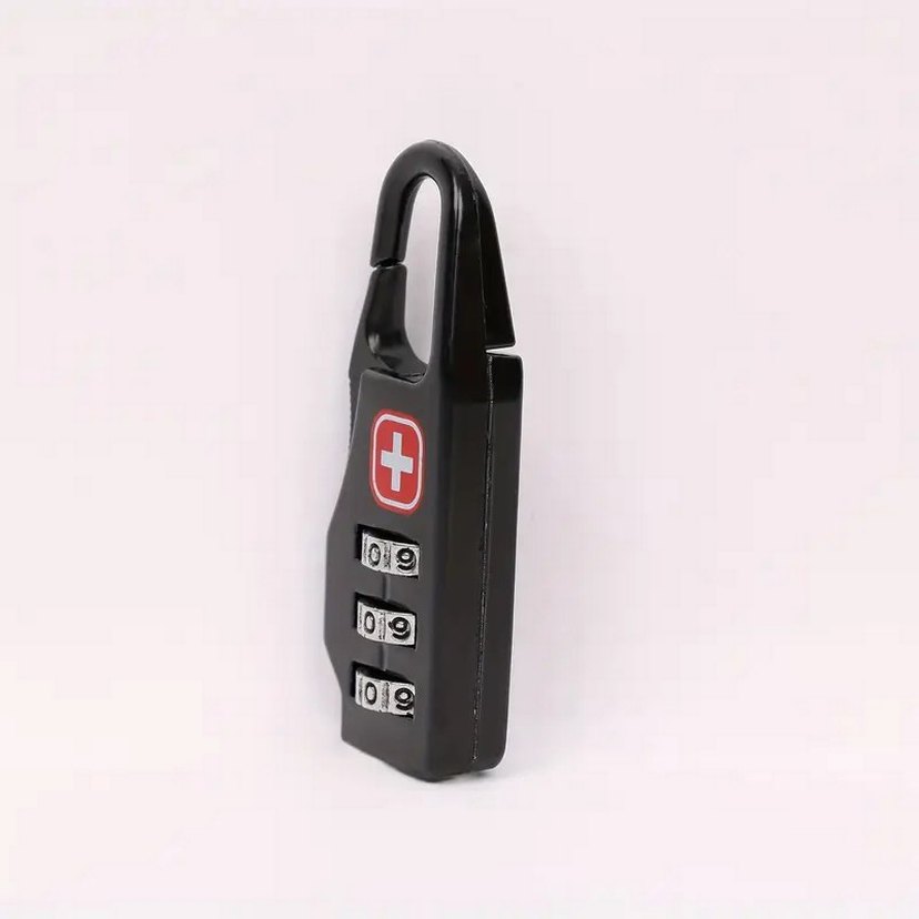 Üçlü şifreli kombinasyon kilidine ve kırmızı haç sembolüne sahip siyah anahtarlık, minimalist ve biker tarzını bir araya getiriyor.
