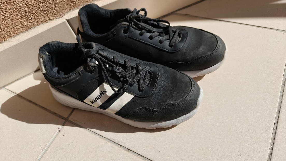 Kinetix markalı siyah kadın spor ayakkabısı, stiletto topuk ve cırt cırtlı detaylıdır. Kauçuk tabanlı, trend sokak stili için uygundur.