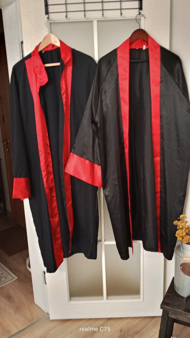 Siyah Kırmızı Detaylı Uzun Mezuniyet Cübbesi