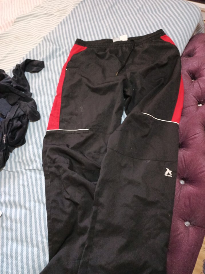 Fermuarlı cepleri ve kırmızı yan panelleri bulunan siyah erkek eşofman altı, dayanıklı sentetik kumaştan yapılmıştır. Sokak stiline uygun rahat kesim. ⛷️