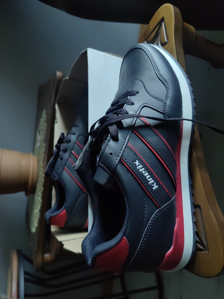 Siyah ve kırmızı renklerde, bağcıklı ve kauçuk tabanlı erkek spor ayakkabısı, trend sokak stili için uygundur.