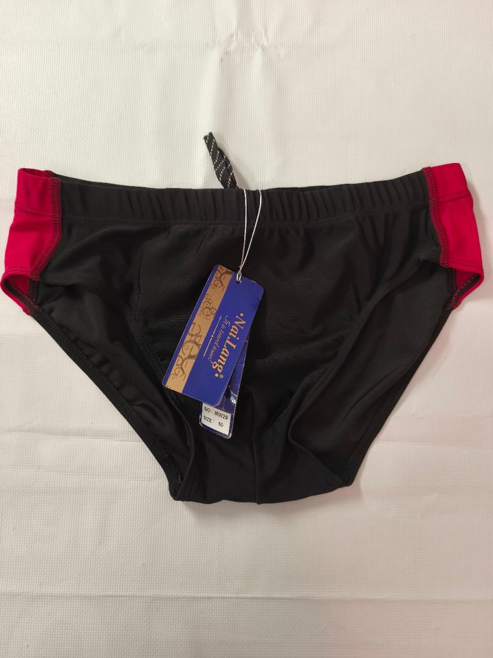 Siyah ve kırmızı yan panelli, elastik bel bantlı, spor ve sokak stili için uygun, vücuda oturan erkek mayo. ♂️