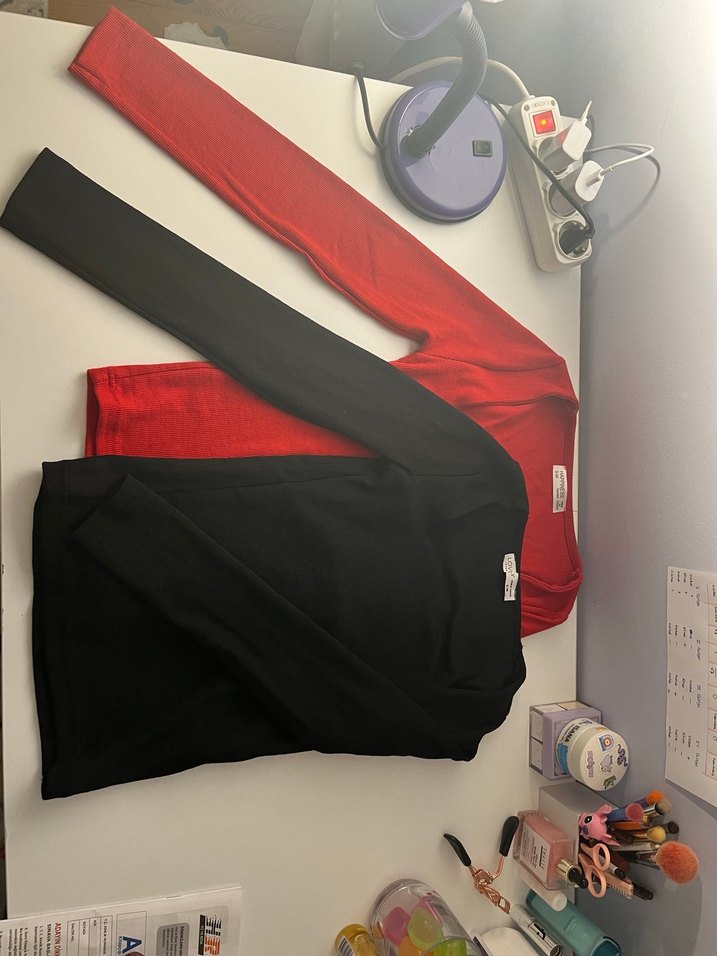 Kırmızı ve siyah, uzun kollu, tekne yakalı, günlük sokak stili için rahat ve şık kadın bluzları. Esnektir. S/M bedenlere uygundur. Fiyat iki adet bluz fiyatıdır. Tekli satın alım yapmak isterseniz ürünler ayrı şekilde profilde mevcuttur.